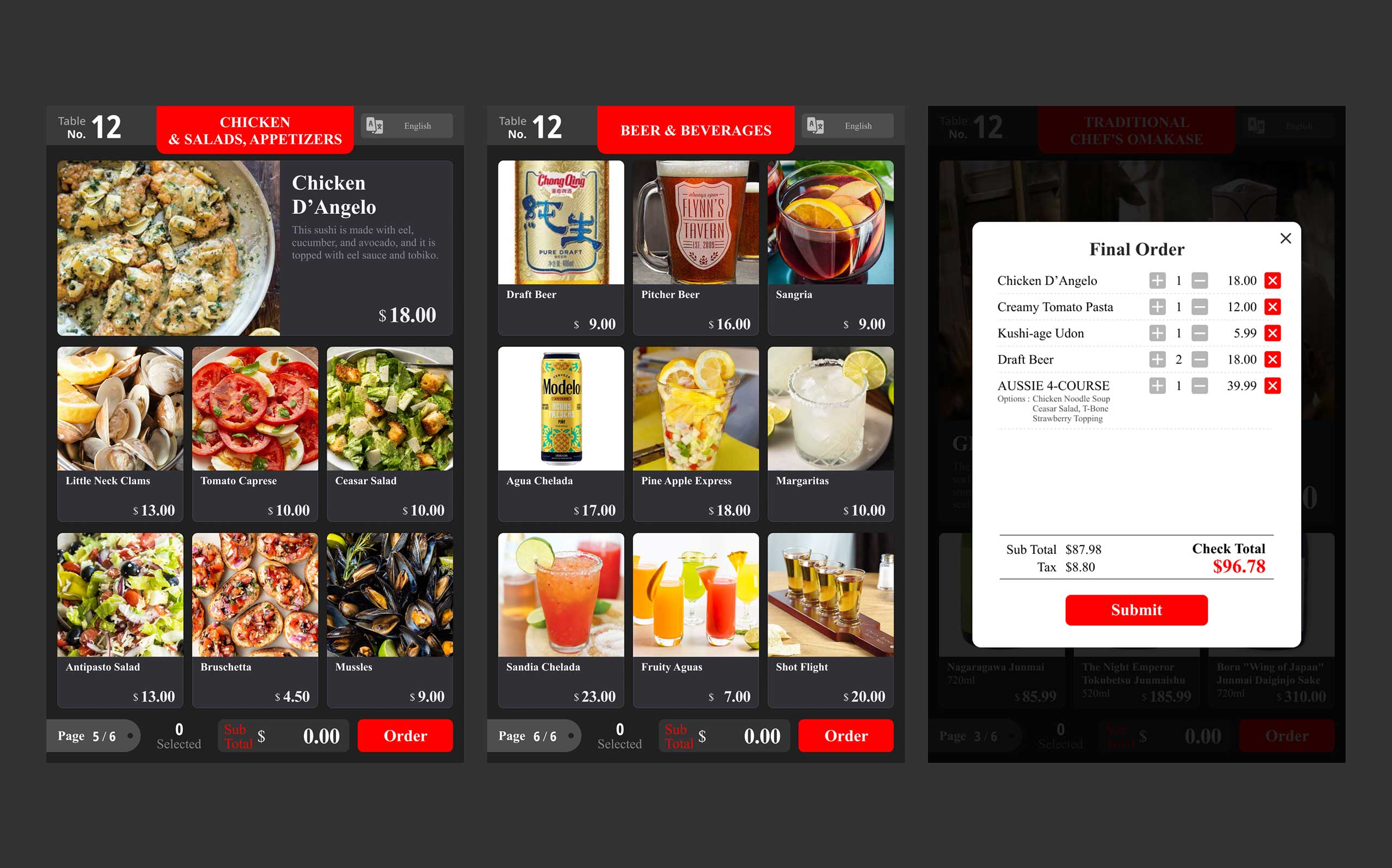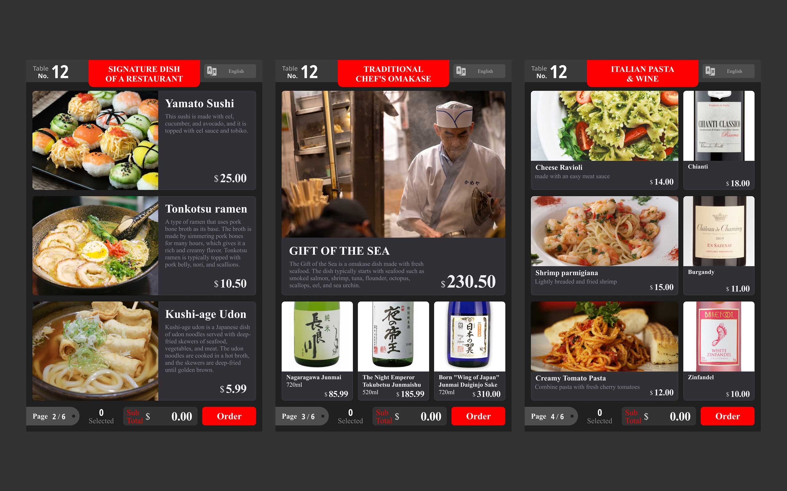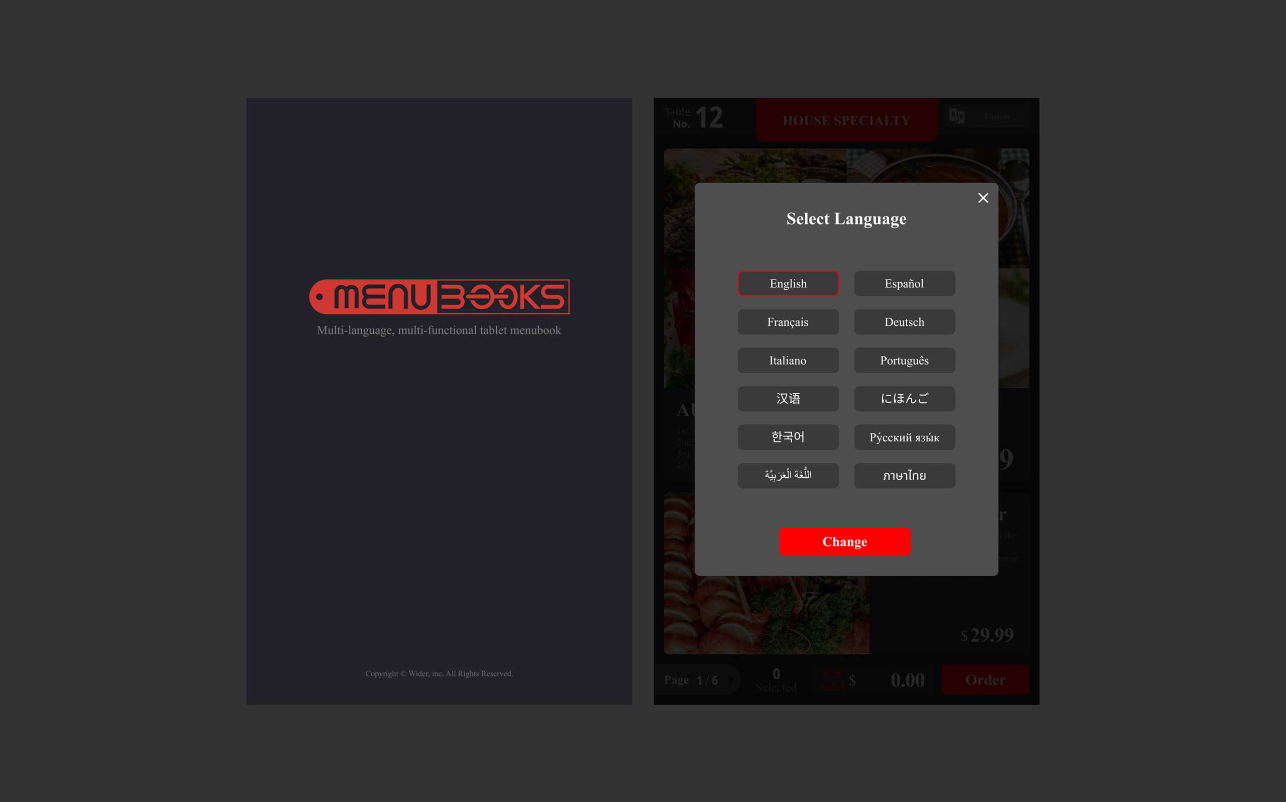 (주)와이더의 다국어, 다기능의 태블릿 메뉴판 프로덕트디자인(UI/UX)