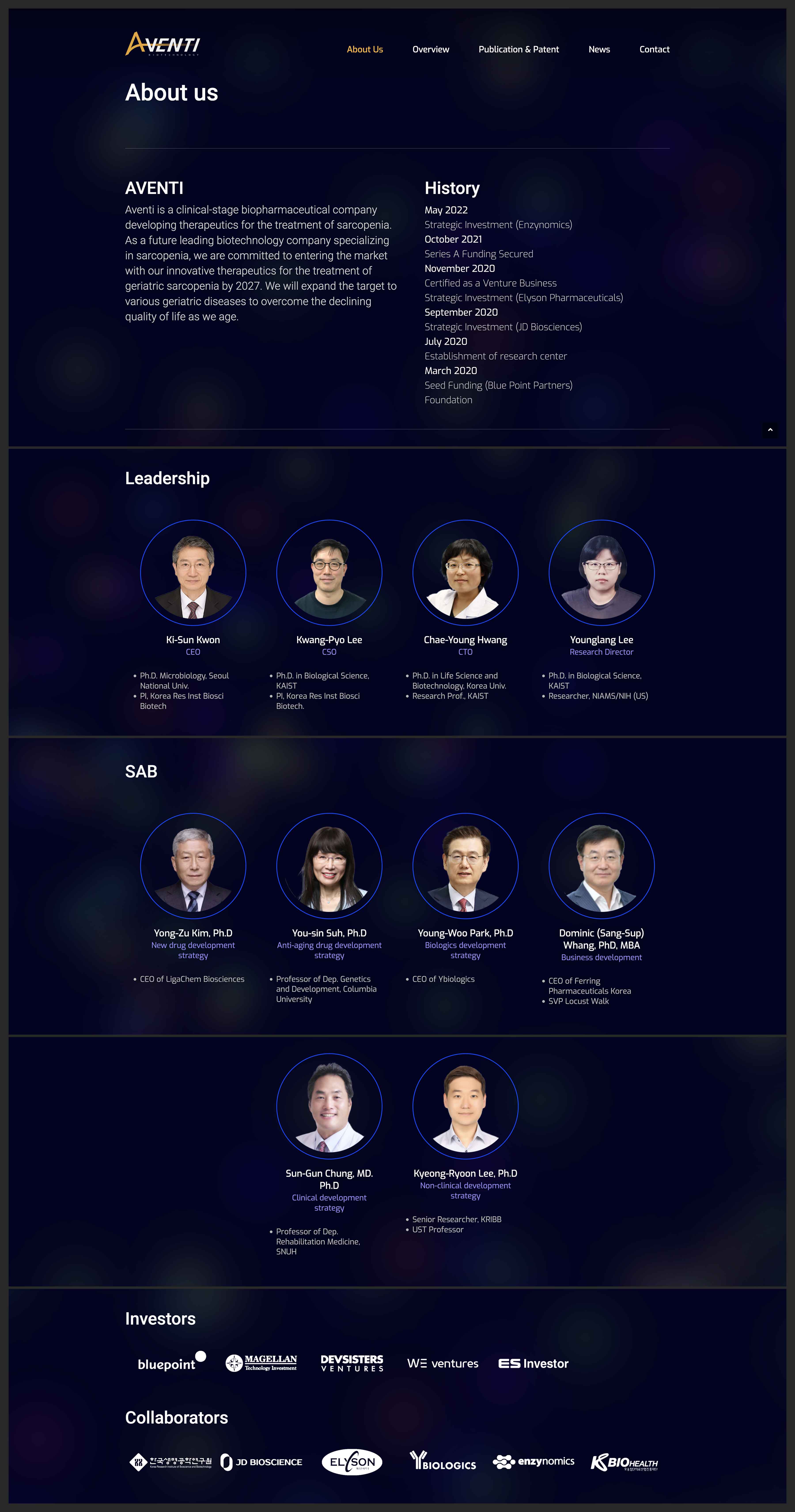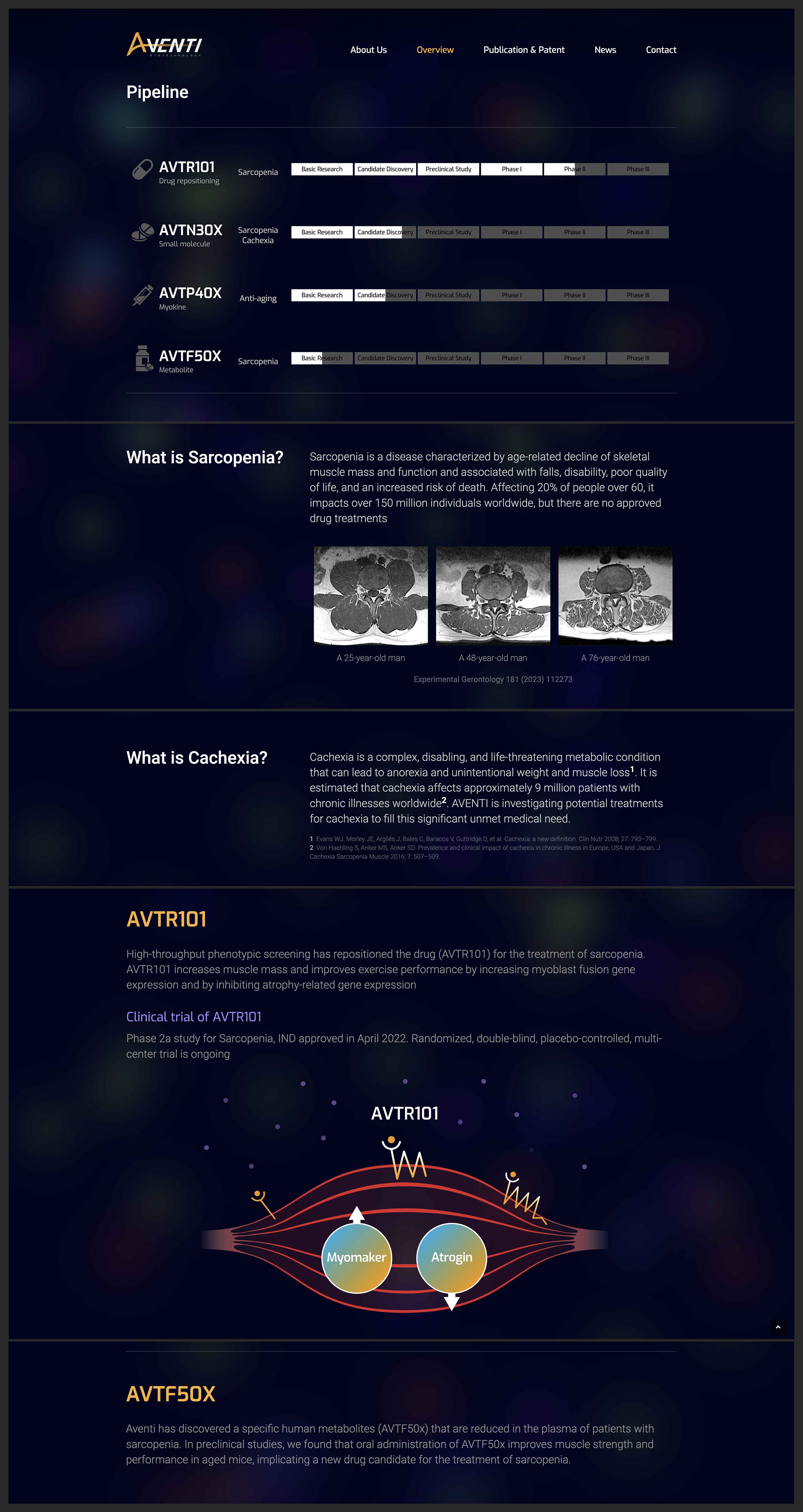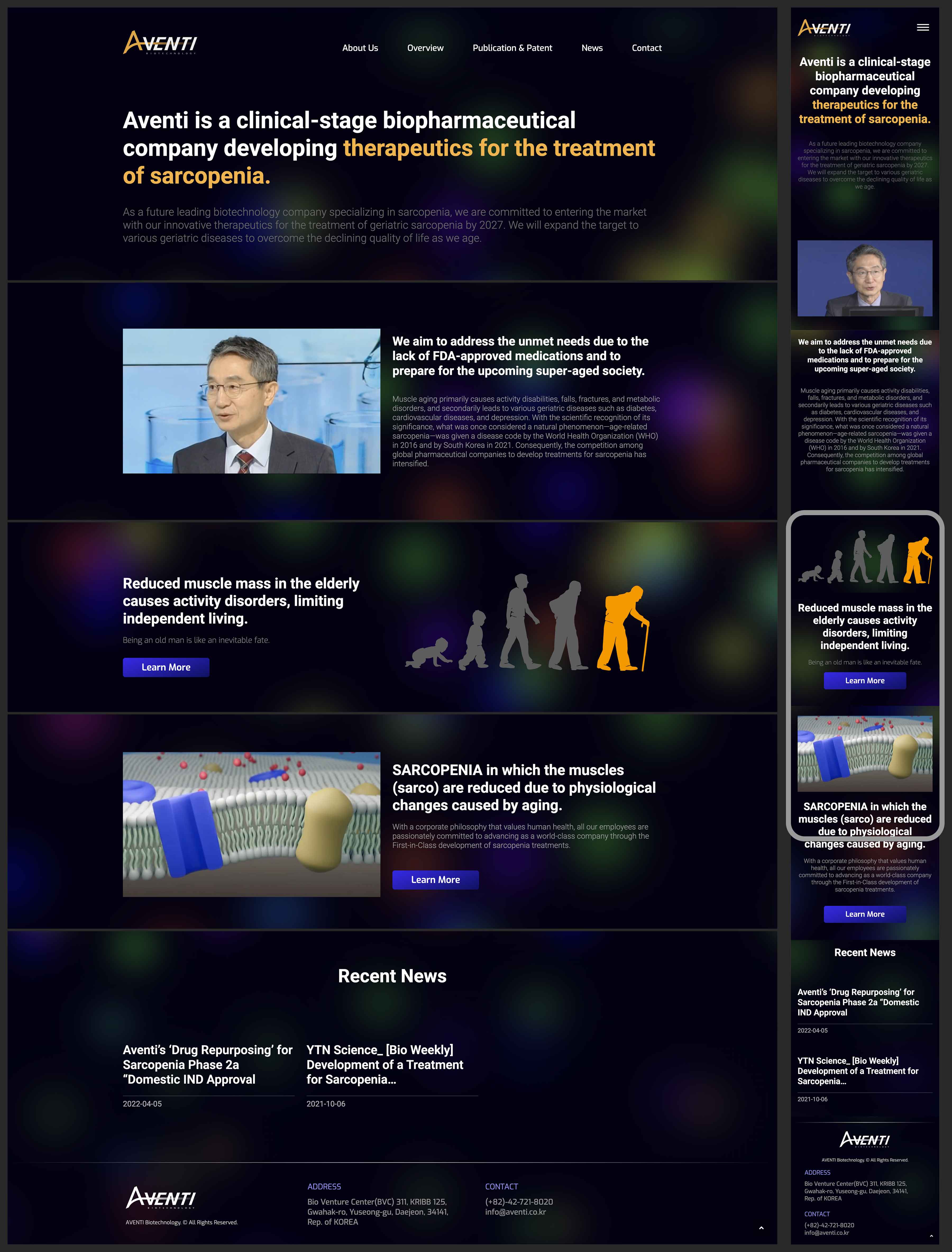 노인성 근감소증 치료제 개발을 주도하는 (주)아벤티의 웹사이트 제작