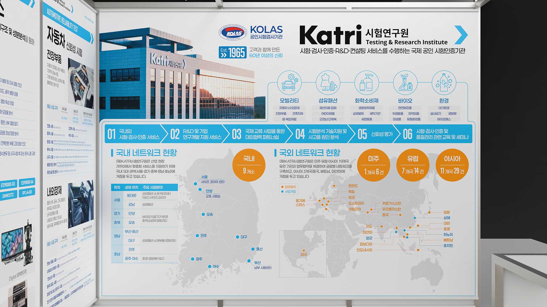 KATRI 시험연구원의 다양한 시험 분야 중 모빌리티 분야에 중점을 둔 그래픽 패널의 제작